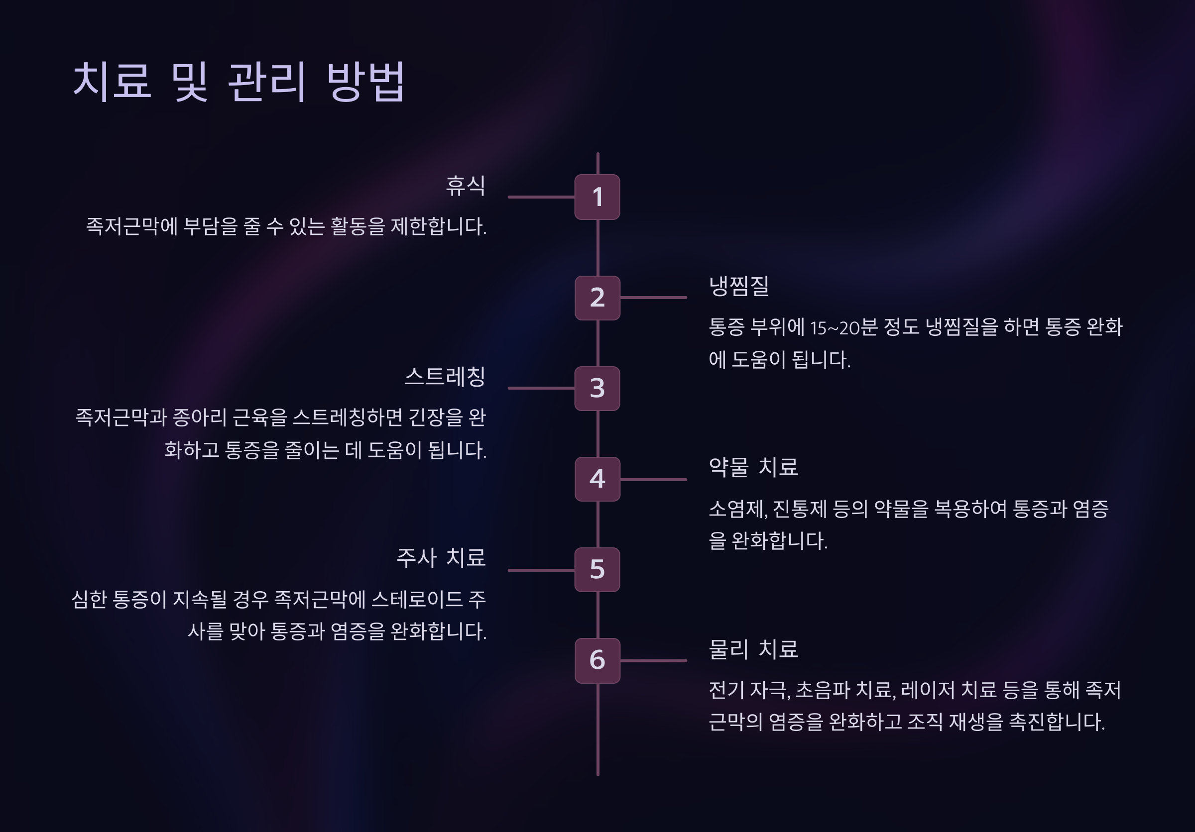 저는 족저근막염에 대해 처음 알게 되었을 때, 아침마다 발뒤꿈치에 느껴지는 찌릿한 통증의 원인이 무엇인지 궁금했어요. 꾸준히 관리하면 증상이 완화된다는 것을 깨닫고 나서는 생활 습관을 바꾸는 데 큰 도움을 받았죠. 아래에서 족저근막염의 증상, 원인, 그리고 치료 방법까지 자세히 알아볼게요.