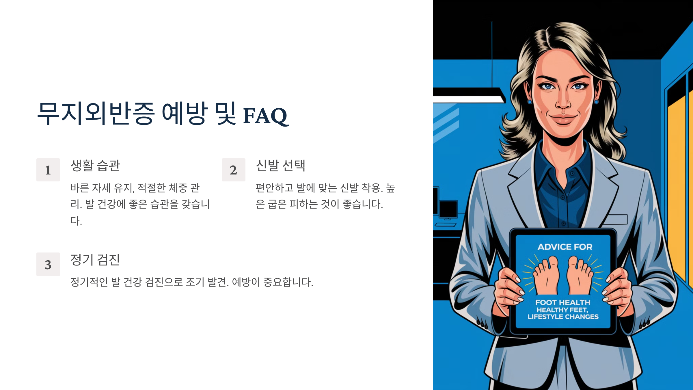 무지외반증은 조기 관리가 가장 중요해요. 올바른 습관을 유지하면 발 건강을 지키면서도 편하게 걸을 수 있답니다. 🦶😊