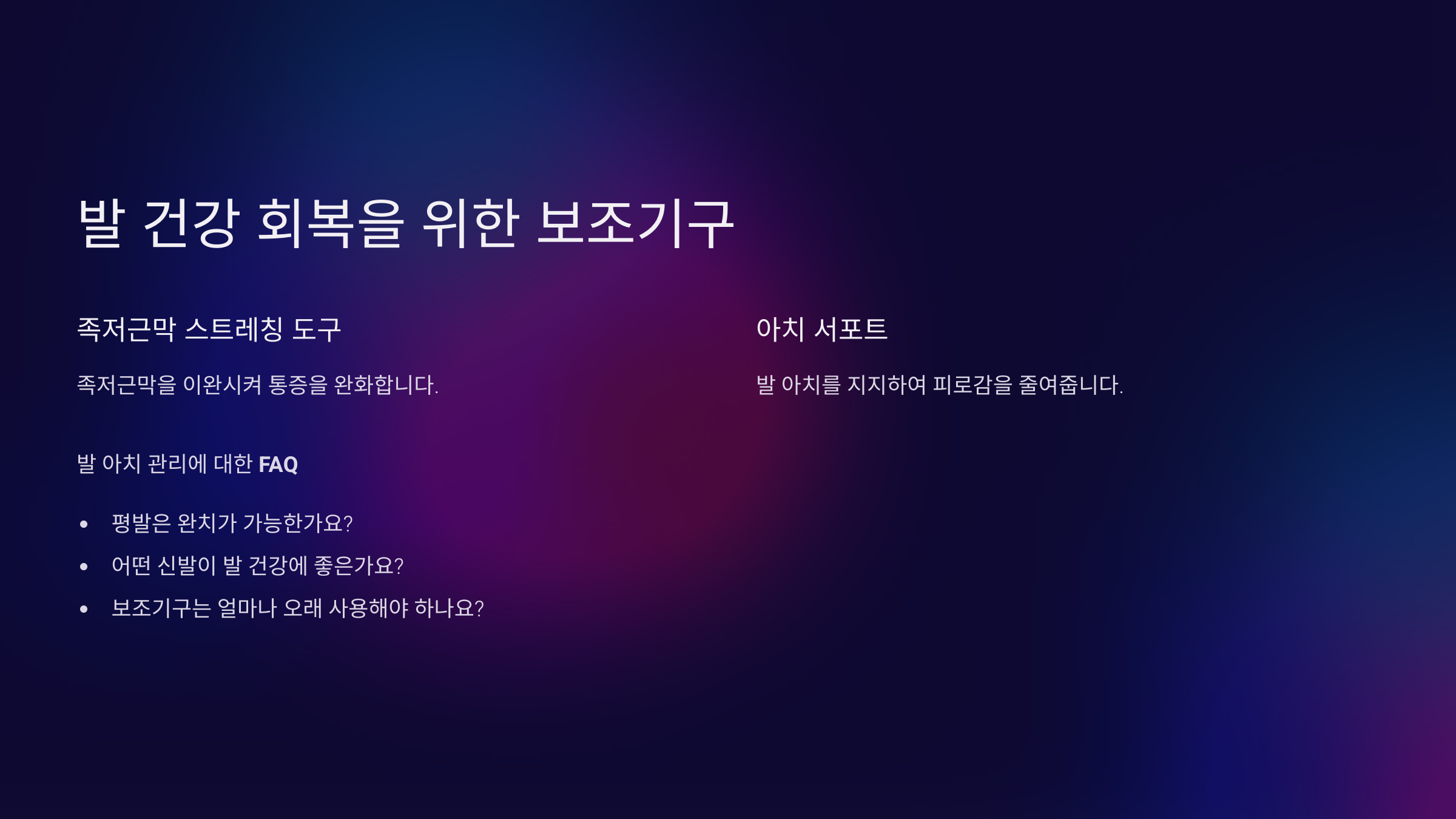 이런 제품을 활용하면 발 아치를 더욱 효과적으로 관리할 수 있어요! 👏
